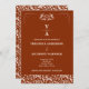 Diese eleganten, klassischen Einladungen für Hochzeiten in Retro-Ambiente sind mit einem schlichten, orangefarbenen Text-Design aus Terrakotta und einem Viktorianischen Blumendesign ausgestattet. Fügen Sie Ihre Initialen oder Monogramme hinzu, um sie komplett zu Ihrem eigenen zu machen.