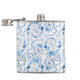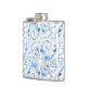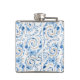 Elegantes und verziertes Viktorianisches Blumenmuster mit blauen Rose und Zierrollen mit zarten braunen Reben und Wirbel auf weißem Hintergrund.