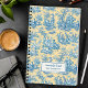 Vintages, blaues, gelbliches Notizbuch. Dieses Vintage romantische Toile-de-jouy-Muster wird durch die exquisiten Entwürfe französischer Landschaftsbilder inspiriert. Diese ausgeklügelten Toile-Drucke sind im Moment ein Alltagswut, schöne Designs, die jedem Gegenstand natürliche Schönheit verleihen. Sie verbinden traditionellen Charme und zeitgenössischen Stil.