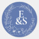 Elegante Vintag Romance Blue Monogram Wedding Runder Aufkleber