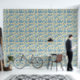 Elegante Vintage, aquamarin-gelbe Jouy-Toile Tapete
