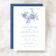 Elegante Vintage Botanische Hochzeit der Navy Einladung