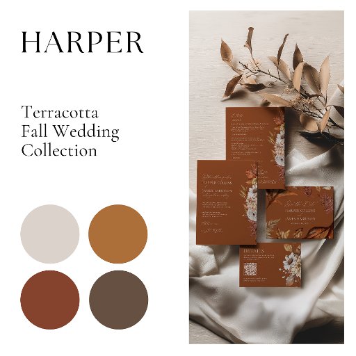 Diese exquisite Einladung erweckt mit seinem zarten Blumendesign und den warmen Terrakottönen das Wesen der Herbstschönheit. Egal ob Sie eine rustikale Freiluftzeremonie oder eine intime Ansammlung im Inneren planen, diese Einladung Set für Ihre Veranstaltung. Personalisieren Sie diese Einladung mit Ihren Namen, Ihrem Hochzeitsdatum und Ihren Veranstaltungsdetails, um sie wirklich zu Ihrem Erlebnis zu machen. Ihre Gäste werden sich freuen, eine so wunderschön gestaltete und sorgfältig gestaltete Einladung zu erhalten, die die Bühne für ein unvergessliches Fest der Liebe bildet. Konzipiert für die "Harper" Einladung Kollektion für Hochzeiten. Sehen Sie sich den Sammellink auf dieser Seite an, um alle passenden Elemente in diesem schönen Design zu sehen.