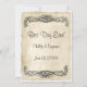 Dieses Vintage Design zeichnet sich durch einen extravaganten Bildlaufrahmen aus einer antiken Buchseite aus. Die Vorderseite hat alle Details, wer, was, wo und wann in leicht anzupassen Vorlagen und den Text Best Day Ever! und ein Platz für Sie, um die glücklichen Ehepaare Namen und Hochzeitstag auf der Rückseite ein mit einem verblassten und alten Pergament Hintergrund komplett mit zertäfelten Kanten.