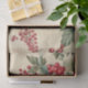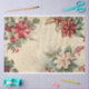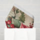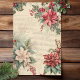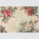 Schönes Weihnachtsgebirge mit bunten Tischtennisbäumen mit weißen und roten Poinsettien mit Heiligenblättern, Weihnachtstext und Noten auf sepia-bedrücktem Pergament-Hintergrund. Geeignet für decoupage Projekte.