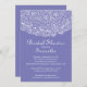 Schöne elegante Vintage antike Hochzeitsdusche, die auf Spitzen in weißem Spitzen-Set auf einem stilvollen, modernen, lichtdurchfluteten lila Hintergrund aufgedruckt ist. Umdreh die Einladung nach oben, um eine passende Farbwiedergabe für eine besondere Touch zu finden. Erhältlich in unserem Shop in einer großen Auswahl an modernen & schicken Farbwahl Ihre Braut wird Liebe. Einfach mit Ihren Party-Informationen personalisieren und garantiert einen perfekten ersten Eindruck. Perfekte Einladung für ein Sommerurlaub, ein Brautparty im Frühling, ein Brautparty im Herbst oder ein Brautparty im Winter.