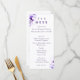 Das Design zeigt die Bilder von zarten Veilchen in oben links und unteren rechten Ecken. Monogramm Braut und Bräuche werden oben angezeigt, gefolgt von Menüüberschriften und Menüoptionen. Der gesamte Text ist anpassbar. Reverse zeigt ein Kreuz und ein größeres Bild eines violetten Bouquets. Konzipiert, um sich mit der "eleganten Violetten katholischen Hochzeitssuite" abzustimmen.