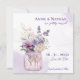Elegante violette Blumen in Mason Jar Blumenzehen Ankündigung