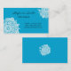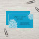 Elegante und hoch entwickelte Visitenkarte. Kennzeichnet weißen Dekor auf Himmelblauhintergrund. Vervollkommnen Sie für einen Hochzeitsplaner, Lebentrainer, Psychologen, Therapeuten, eine Mamma oder einen Lehrer. Kleiner Dekor auf der Rückseite. Verfügbar in anderen Farben.
