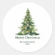 Eleganter Rundaufkleber ohne Foto mit festlichem Weihnachtsbaum in Aquarellfarbe mit Glasverzierungen. Personalisieren Sie die Karte, indem Sie einen benutzerdefinierten Gruß, Ihren Familiennamen und das Jahr hinzufügen. Die Weihnachtsbaum-Urlaubskarte kehrt zu Ihrer Nachricht zurück, die in schwarzer Schrift und weißem Hintergrund angezeigt wird.
