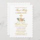 Die elegante Wasserfarben Peach Floral Erste Heilige Kommunion Einladung umfasst pfirsichfarbene Rose, weiße Blume und Grün. Gold Cross. Brackstil
