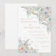 Erstellen Sie mit dieser eleganten Wasserfarben-Blumen-Einladung mit zarten pastellfarbenen Blumen und botanischem Grün eine weiche und romantische Atmosphäre. Die sanfte Palette aus Rosa, Lavendel, Pfirsich und Salbeiblättern schafft eine zeitlose Blumenkomposition, die perfekt für besondere Feiern ist.