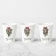Moderne Elegante Kalligraphie Tinte Aquarellkiefern Wintergrün mit Burgundy Red Ribbon Bow Weihnachtsschmuck, Pine Cones und Holly Berries Happy Holidays Paper Cups