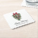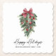 Moderne Elegante Kalligraphie Tinte Aquarellkiefern Wintergrün mit Burgundy Red Ribbon Bow Weihnachtsschmuck, Pine Cones und Holly Berries Happy Holidays Paper Untersetzer