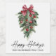 Moderne Elegante Kalligraphie Tinte Aquarellkiefern Wintergarten mit Burgundy Red Ribbon Bow Weihnachtsschmuck, Pine Cones und Holly Berries Happy Holidays Weinflaschen Label