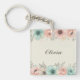 Dieser personalisierte trendige Schlüsselanhänger besticht durch elegante, skizzenhafte Blume auf der Oberseite und auf der Unterseite mit sanften Aquarelltexturen in Rosa und Minzgrün.