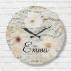 Elegante Wasserfarben Vintage Noten Große Wanduhr