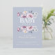 Elegante Watercolor Blau Rosa Blütendusche Einladung