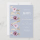 Elegante Watercolor Blau Rosa Blütendusche Einladung