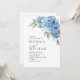 Elegante Watercolor Blue Hydrangea Blumenhochzeit Einladung