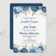 Elegante Watercolor Blue Rose Blumenhochzeit Einladung