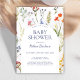 Elegante Watercolor Boho Wildblume Babydusche Einladung