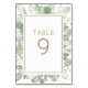 Moderne Salbei und goldenes Wasserfarbenfolien grenzen an Ihre Tischnummer in Gold. Das gleiche Design ist auch auf der Rückseite. Einfach die Typografie personalisieren, wird sie sich auch auf der anderen Seite automatisch ändern.