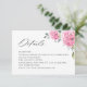Elegante Watercolor Pink Hydrangea Hochzeitsdetail Begleitkarte