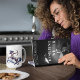Diese stilvolle Tasse zeichnet sich durch eine brillante Aquarelldarstellung des astrologischen Schildes Sagittarius in einer eleganten Kombination aus Schwarz, Blau, lila, Gold und Elfenbein aus. Beginnen Sie mit der Auswahl Ihres Tasse-Stils. Wählen Sie klassisch weiß oder fügen Sie eine Komplementärfarbe in die Tasse oder auf den Griff ein. Das Design enthält den Namen des Empfängers und hebt die wichtigsten Persönlichkeitsmerkmale dieses Zeichens hervor. Mit dem Design Edit-Feld rechts können Sie den Namen einfach und schnell personalisieren, den Schriftart ändern oder einen beliebten Satz oder Zitat hinzufügen.