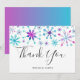 Winter Thema Hochzeit danke Karte mit Aquarellschneeflocken. Der Text sagt "danke" im Script-Schriftart mit den Namen der Neuvermählten darunter. Die Rückseite der Karte ist rosa und blau ombre.