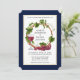 Moderne, elegante Watercolor Trauben und Weine Holzreath Einladung - Navy Blue Background und Gold Frame