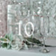 Einfaches, übersichtliches Akrylheiratsschild mit der Tischnummer "Tisch" und der Tischnummer in eleganter weißer Serifentypografie, und Ihre Namen und Ihr Empfang gehen in modernster Weißtypografie aus. Erstellen Sie jede Tischnummer einzeln und fügen Sie jeweils eine zu Ihrem Warenkorb hinzu, dann Karo aus, wenn alle Zahlen in Ihrem Warenkorb sind.