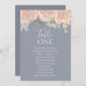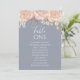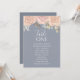 Dieses Design besticht durch ein elegantes Blumenschild, einen eleganten, schlichten Kalligraphiestil mit blauen, blumengeschmückten Blume in Rosa und einem minimalistischen Empfang.