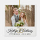 Erstellen Sie ein elegantes, weißes Trauungssakendekor mit einem oder zwei Fotos, einem eleganten Kalligrafieschrift-Schriftart für die Namen des Ehepaares, gepaart mit Hochzeitsringen und deren Hochzeitsdatum. Macht ein bedeutendes Hochzeitsgeschenk oder ein Weihnachtsgeschenk für die Neuvermählten oder erschaffen Sie ein Gedenken an Ihre Ersten Weihnachten als Mr. und Mrs. Für Änderungen oder Hilfe, kontaktieren Sie den Designer, BEVOR Bestellung über Zazzle Chat oder makeitaboutyoustore@gmail.com.
