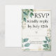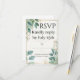 Eine raffinierte RSVP-Hochzeitskarte mit Aquarell-Blätter und einem zarten Goldrahmen. Dieses elegante Design ist perfekt für das Sammeln von Gastantworten geeignet und ergänzt moderne und zeitlose Hochzeitsreisepauschalen mit Einladungen, Menüs und Dankeskarten.