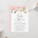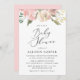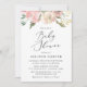 Elegante Blumendusche mit Babyduschdetails, ergänzt durch moderne Kalligraphie-Schrift und eine obere Grenze von Aquarellfarben-Rose und Blätter in gedämpften Tönen wie Rosa, Elfenbein, Lila, staubige Rose und Grün. Auf der Rückseite ist ein solider, hellrosa Hintergrund zu sehen. Entworfen, um mit unserer Subtle Blooms Kollektion zu koordinieren.