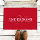 Eine stilvolle, moderne Türmatte mit Ihrem Nachnamen in klassischer Typografie, gepaart mit handgeschriebenen Schriften in Weiß, in einer wunderschönen, leuchtend roten Farbe. Ein elegantes, minimalistisches Design, das sich in dieser Weihnachtszeit von der Masse abhebt!