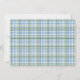 Dieses kleine Baby-Duschdesign mit Aquarellen-Weihnachtsbäumen, die mit blauen und weißen Bausteinen im "Ingwer-Stil" geschmückt sind, sowie weißen Poinsettien und blauen Bauern. Wasserfarbene Elemente, die ursprünglich von mir handgemalt wurden. Auf der Rückseite befindet sich ein hellblauer und grüner karierter Karo.