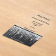 Zarte silberne Schwünge trennen Ihre personalisierten Feierdetails in einer Schreibschrift, und Ihre Schrift ist schwarz mit komplementären silbergrauen Schlagschatten.
