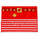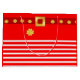 Rot-weiß gestreifte Geschenktasche mit goldenen Klee verziert.