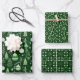 Geschenkverpacktes Set mit drei Designs, die das gleiche Farbschema haben, wobei Grün die Hauptfarbe ist: Die erste ist eine traditionelle Weihnachtsbaumdekoration mit dem Satz Frohe Weihnachten in Weiß, die zweite ist ein Stift mandala Muster und die dritte ist ein geometrisches Muster. Die drei Wickelpapiere passen perfekt zusammen, sodass Sie garantiert Ihre Geschenke in einer einheitlichen und eleganten Art und Weise haben.