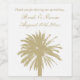 Elegante Weinflaschen für schicke Hochzeiten am Strand. Tropische Designvorlage mit Silhouette der Palmen. Personalisieren Sie mit eigenem Text und Namen von Braut und Bräutigam. Teil eines schönen, passenden Themas mit Tischdekoration und Schreibwaren. Sandbeige oder Farbdruck nach Maß.