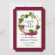 Moderne elegante Watercolor Trauben und Weinreben Save the Date Hochzeitskarte - Burgunder Hintergrund mit Goldrahmen.