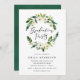 Chic-elegante Abiturfeier mit einem weißen blumengeschmückten Kranz mit üppigen grünen Blattakzenten und fließendem Script-Schriftart. Personalisieren Sie die stilvolle Einladung, indem Sie Ihre Graduiertenparty Details für ein Design, das Ihre Gäste beeindrucken wird. Auf der Rückseite der Einladung befindet sich ein grüner Aquarellhintergrund. Für ein individuelleres Design, fügen Sie das Foto und den benutzerdefinierten Text Ihres Absolventen auf der Rückseite der Einladung.