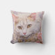 Ein Kissen mit einer schönen Illustration. Eine lange haarige weiße Katze sieht regal und elegant aus. Umgeben von rosa Blume, Gold und Diamantschmuck.