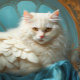 Einführung eines KittyBird. Dieses weiße, langhaarige Halbkatze- und Halbvogeltier heißt Angel und liegt auf blauer Seide. Dieses Bild ist auf mehreren qualitativ hochwertigen Produkten erhältlich. Dieses einzigartige Design zeichnet sich durch eine fesselnde weiße, langhaarige Fantasiekatze aus, die mit ätherischen Federn geschmückt ist und eine mystische und charmante Atmosphäre schafft, während sie sich auf blauer Seide setzt. Die primäre Farbpalette besteht aus sanften Pastelltönen. Das Fell der Katze zeigt ein unberührtes Weiß, das Reinheit und Gnade symbolisiert. Der Hintergrund aus Seidenstoff steigert die traumhafte Qualität noch weiter und verleiht der Ästhetik eine Touch Luxus. Die Bilder erfassen das Wesen magischer Kreaturen, wobei die Katze eine Aura des Mysteriums und des Charmes ausstrahlt. Die Zugabe von skurrilen Elementen wie Federn fügt eine spielerische Touch hinzu und schafft ein bezauberndes visuelles Erlebnis. Der fantasievolle Katzenvogel mit seinem faszinierenden Blick und seiner anmutigen Haltung verkörpert die Schönheit mythischer Wesen. Für Katzenliebhaber und Fantasy-Liebhaber ist dieses Design eine reizvolle Feier der niedlichen und charmanten Katzenarten in einem fantasievollen Ambiente. Die nahtlose Integration von magischen Elementen und bezaubernden Katzen und Vögeln macht es zu einer perfekten Wahl für diejenigen, die die Launen und den Reiz von Fantasiebekleidung schätzen.
