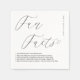 Machen Sie Ihren Hochzeitsempfang unvergesslich mit unseren eleganten weißen Servietten mit personalisierten Funts über Braut und Bräutigam. Diese stilvollen Servietten sind mit einem zarten, schwarzen, dünnen Drehbuch und einem charmanten Herzsymbol geschmückt und sorgen für eine Touch Eleganz. Diese Servietten sind perfekt für Cocktails, Vorspeisen oder Desserts geeignet und vereinen die praktische und persönliche Touch. Passen Sie sich mit Ihren Namen und einzigartigen lustigen Fakten an, um einen Sake zu schaffen, den Ihre Gäste lieben werden. Diese Servietten sind erschwinglich und chic und ein Muss für unvergessliche Hochzeitsfeiern. personalisiertes Design: Individuelle Namen und unterhaltsame Fakten in der modernen Typografie. Stylish und praktisch: Ideal für Cocktails, Vorspeisen oder Desserts. Eleganter Hintergrund mit schwarzer Schrift und Herzsymbol Lassen Sie Ihren Hochzeitstag mit unseren eleganten weißen Servietten mit personalisierten Funfakten ausklingen!