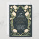 Erfassen Sie zeitlose Eleganz mit dieser Art Nouveau-inspirierten Einladung! Mit weißen Pfingstrosen und Blättern vor blauem Hintergrund setzt dieses Design den Ton für eine anspruchsvolle Feier. Perfekt für Hochzeiten, Galas und Jubiläen! Bitte beachten Sie, dass das Gold auf diesem Produkt KEINE echte Folie ist; es ist flach gedruckt.