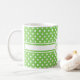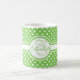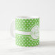 Elegante weiße Polka Punkte auf grünem Monogramm Kaffeetasse