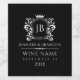 Elegantes, einfaches, mit Monogramm Weinetikett. Weißer Blumenrahmen mit Krone und individuellem Monogramm: Schwarz veränderbarer Hintergrund und anpassbare Textvorlage.